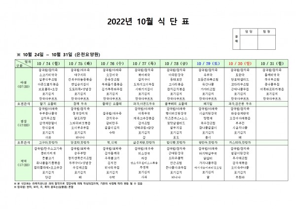 10월 넷째주 식단표 페이지 정보 작성자 은천노인복지회 작성일22-10-20 15:06 조회84,236회 댓글0건 관련링크 이전글 다음글 목록 답변 본문 . 이전글 다음글 목록 답변