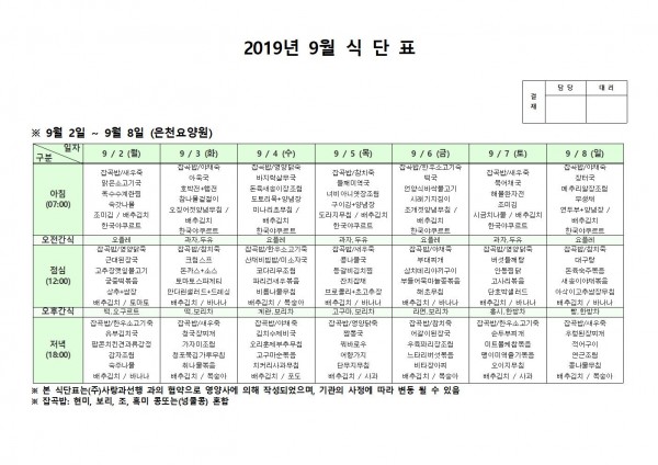 9월 첫째주 식단표 페이지 정보 작성자 은천노인복지회 작성일19-09-09 14:48 조회187,266회 댓글0건 관련링크 이전글 다음글 목록 답변 본문 9월 첫째주 식단표 이전글 다음글 목록 답변