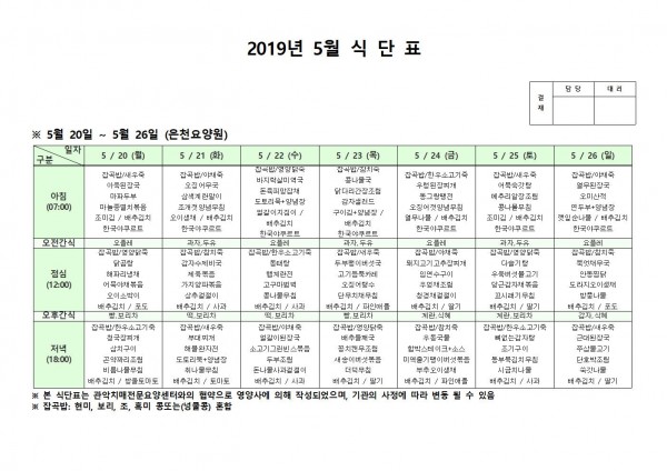 5월 셋째주 식단표 페이지 정보 작성자 은천노인복지회 작성일19-05-27 14:07 조회193,274회 댓글0건 관련링크 이전글 다음글 목록 답변 본문 5월 셋째주 식단표 이전글 다음글 목록 답변