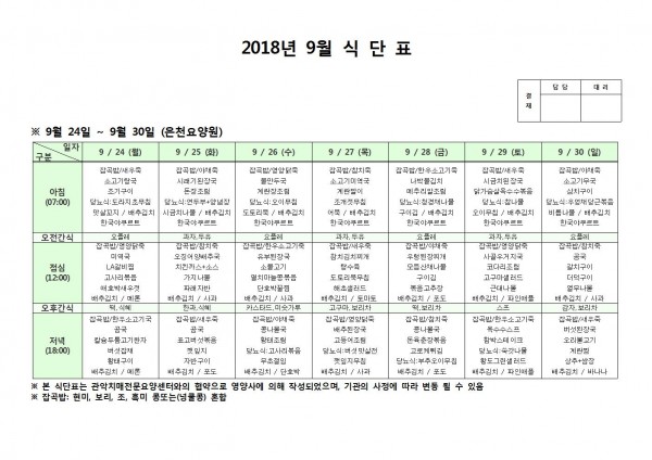 9월 넷째주 식단표 페이지 정보 작성자 은천노인복지회 작성일18-10-08 11:06 조회196,586회 댓글0건 관련링크 이전글 다음글 목록 답변 본문 9월 넷째주 식단표 이전글 다음글 목록 답변