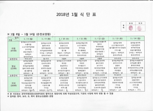 1월 둘째주 식단표 페이지 정보 작성자 은천노인복지회 작성일18-01-08 16:25 조회184,768회 댓글0건 관련링크 이전글 다음글 목록 답변 본문 1월 둘째주 식단표 이전글 다음글 목록 답변