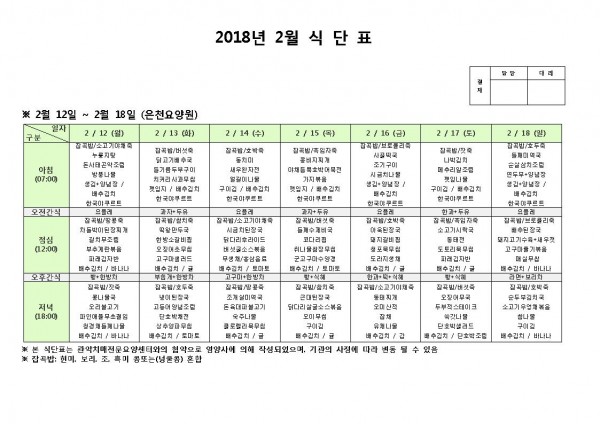 2월 둘째주 식단표 페이지 정보 작성자 은천노인복지회 작성일18-02-12 11:15 조회186,825회 댓글0건 관련링크 이전글 다음글 목록 답변 본문 2월 둘째주 식단표 이전글 다음글 목록 답변