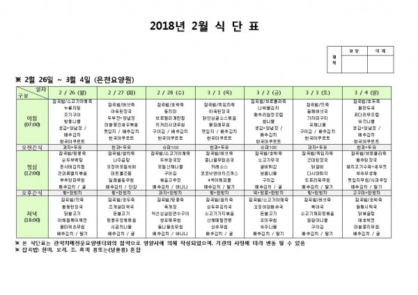 3월 첫째주 식단표 페이지 정보 작성자 은천노인복지회 작성일18-02-27 16:10 조회187,712회 댓글0건 관련링크 이전글 다음글 목록 답변 본문 3월 첫째주 식단표 이전글 다음글 목록 답변