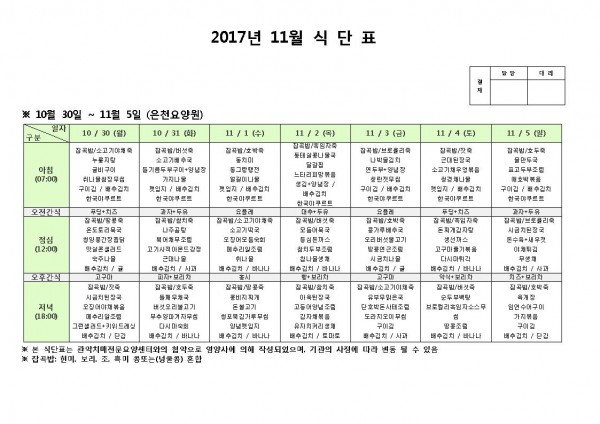 11월 첫째주 식단표 페이지 정보 작성자 은천노인복지회 작성일17-11-09 10:43 조회177,744회 댓글0건 관련링크 이전글 다음글 목록 답변 본문 11월 첫째주 식단표 이전글 다음글 목록 답변