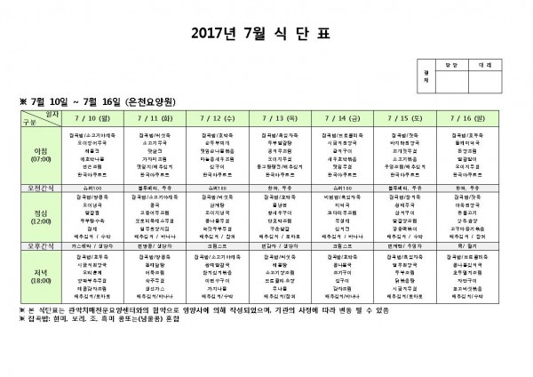 7월 둘째주 식단표 페이지 정보 작성자 은천노인복지회 작성일17-07-11 09:20 조회171,743회 댓글0건 관련링크 이전글 다음글 목록 답변 본문 7월 둘째주 식단표 이전글 다음글 목록 답변