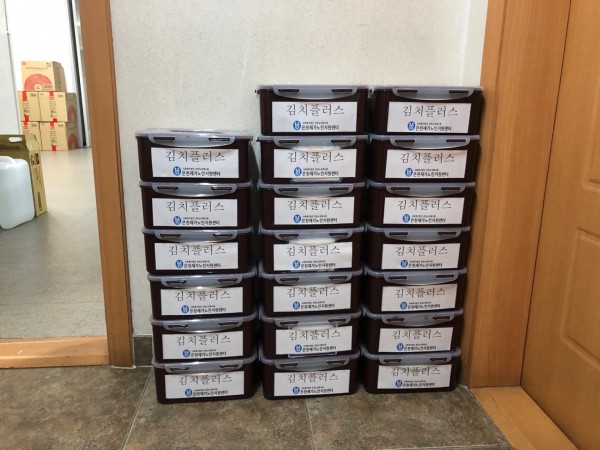 어르신들의 건강한 식생활과 면역력 증진을 위해 전 직원이 동참하여 김장을 하였습니다. 완성된 김치(오이김치)는 조리 능력이 없는 남자어르신 20명에게 지원하였습니다.