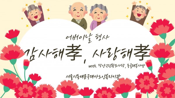 [서울시동대문구재가노인복지기관] 어버이날 기념 '감사해孝, 사랑해孝' 페이지 정보 작성자 은천노인복지회 작성일25-05-14 15:07 조회1,852회 댓글0건 관련링크 이전글 다음글 목록 답변 본문 2025년 5월 어버이날 기념으로 선물과 간식을 전달해드리며 행사를 진행하였습니다. 이전글 다음글 목록 답변