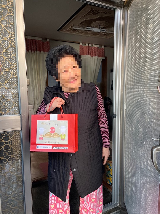 [재가노인지원센터] 설명절 선물지원서비스 페이지 정보 작성자 은천노인복지회 작성일21-02-26 09:42 조회22,941회 댓글0건 관련링크 이전글 다음글 목록 답변 본문 2021년 설 멸정을 맞이하여 어르신들을 찾아뵙고 선물을 전하면서 안부확인을 진행하였습니다. 이전글 다음글 목록 답변