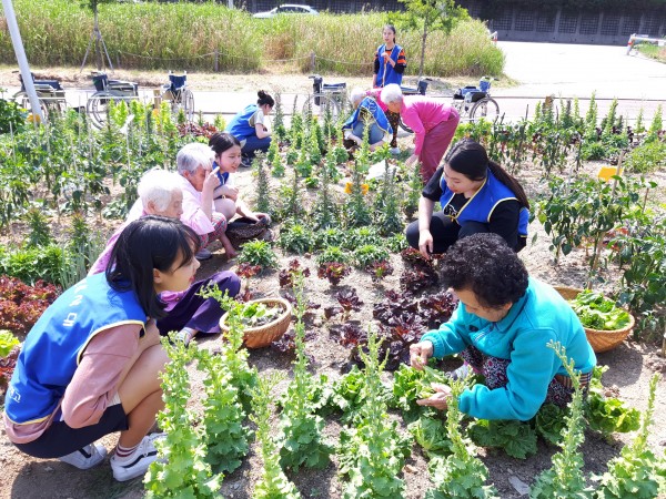 [특화프로그램]해성컨벤션고등학교와 함께하는 텃밭가꾸지 페이지 정보 작성자 은천노인복지회 작성일17-06-14 18:08 조회7,578회 댓글0건 관련링크 이전글 목록 답변 본문 중랑천 텃밭에서 해성국제컨벤션고 학생들과 함께 상추를 뜯어왔습니다. 뜯어온 상추는 저녁식사때 어르신들 모두 나누어 드셨습니다. 이전글 목록 답변